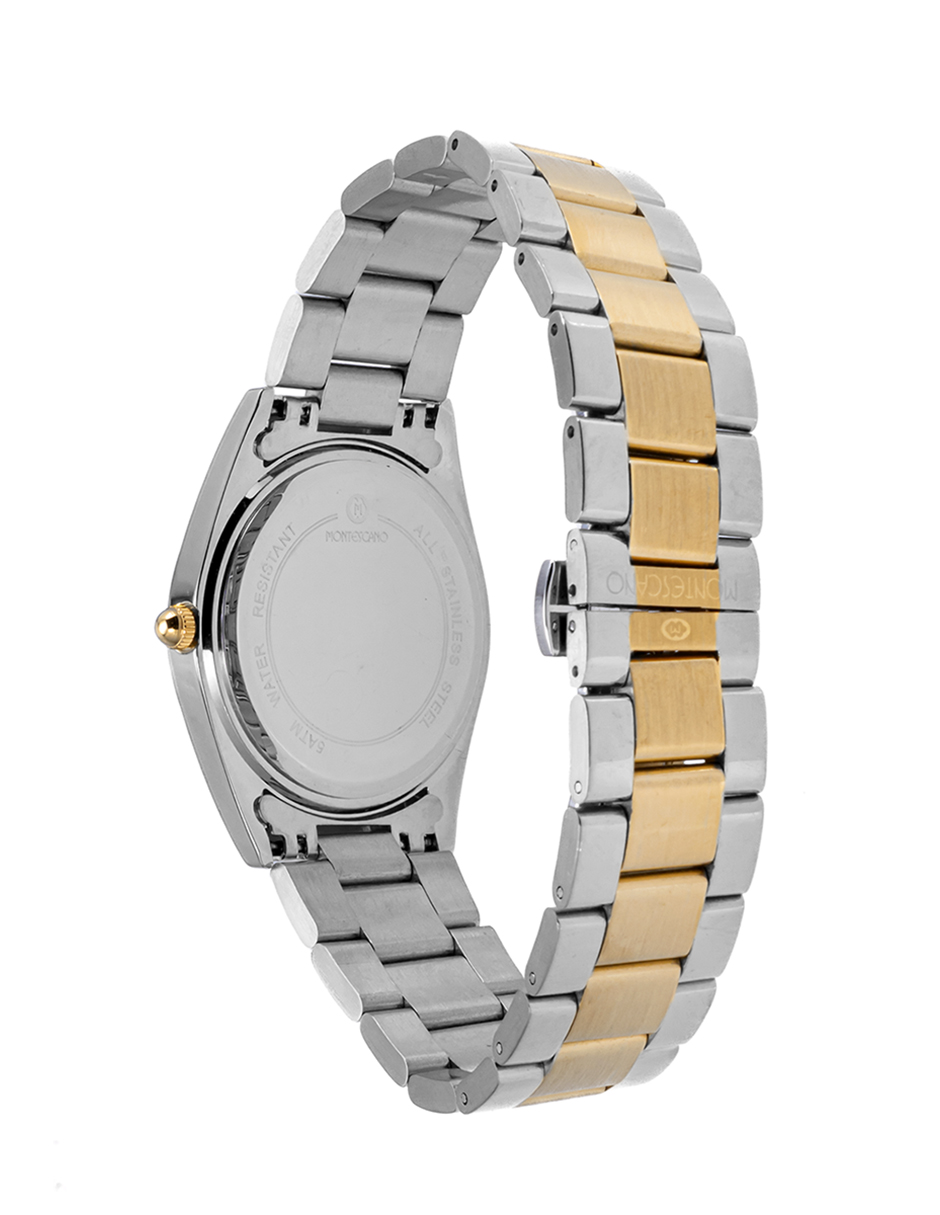 El nuevo reloj Montescano TTDB3525 para caballero en dos tonos con mecanismo de cuarzo, acero inoxidable, mecanismo Miyota y cristal mineral.